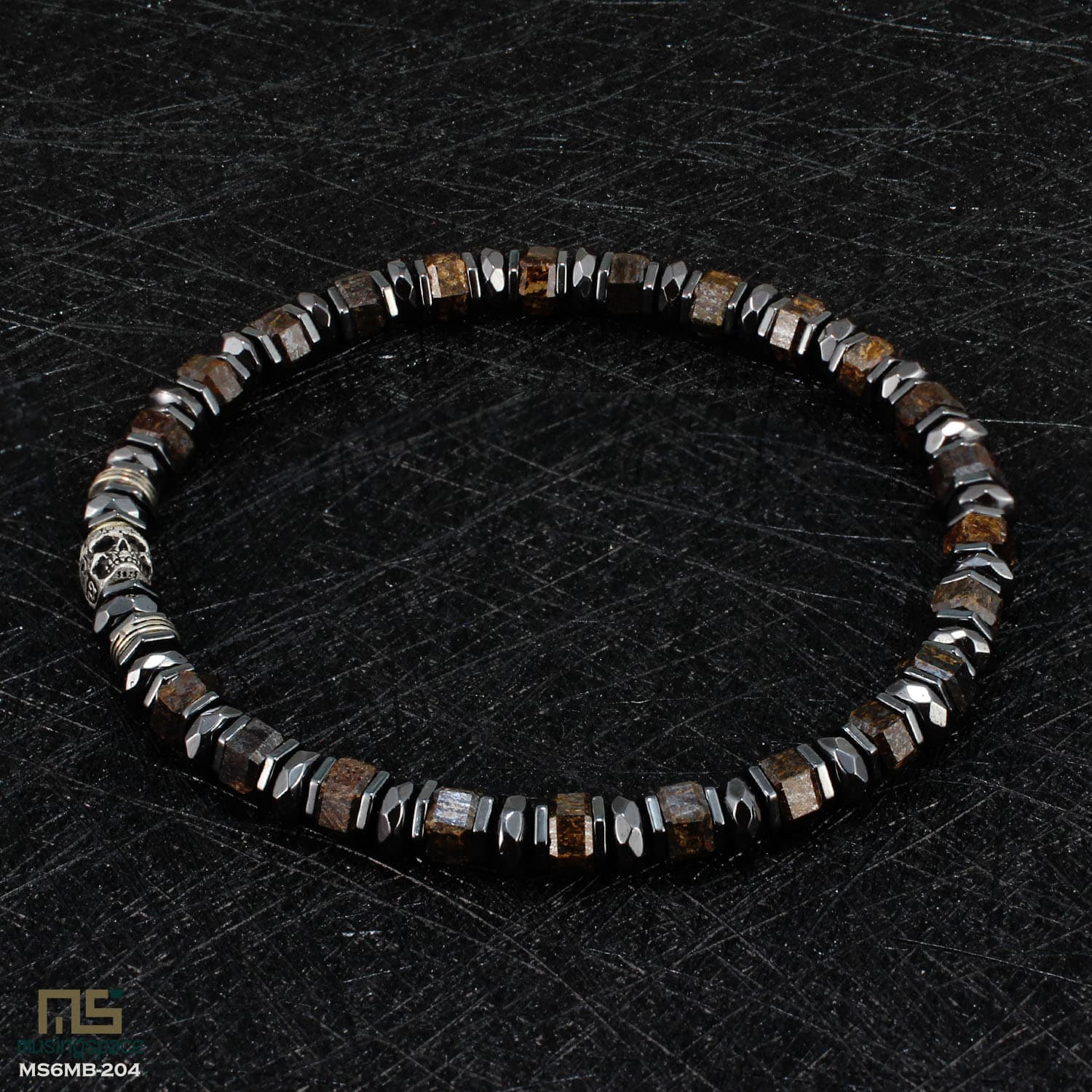 Bronzite Skull S925 Silver - Healing Gemstone Bead Bracelet | 6mm