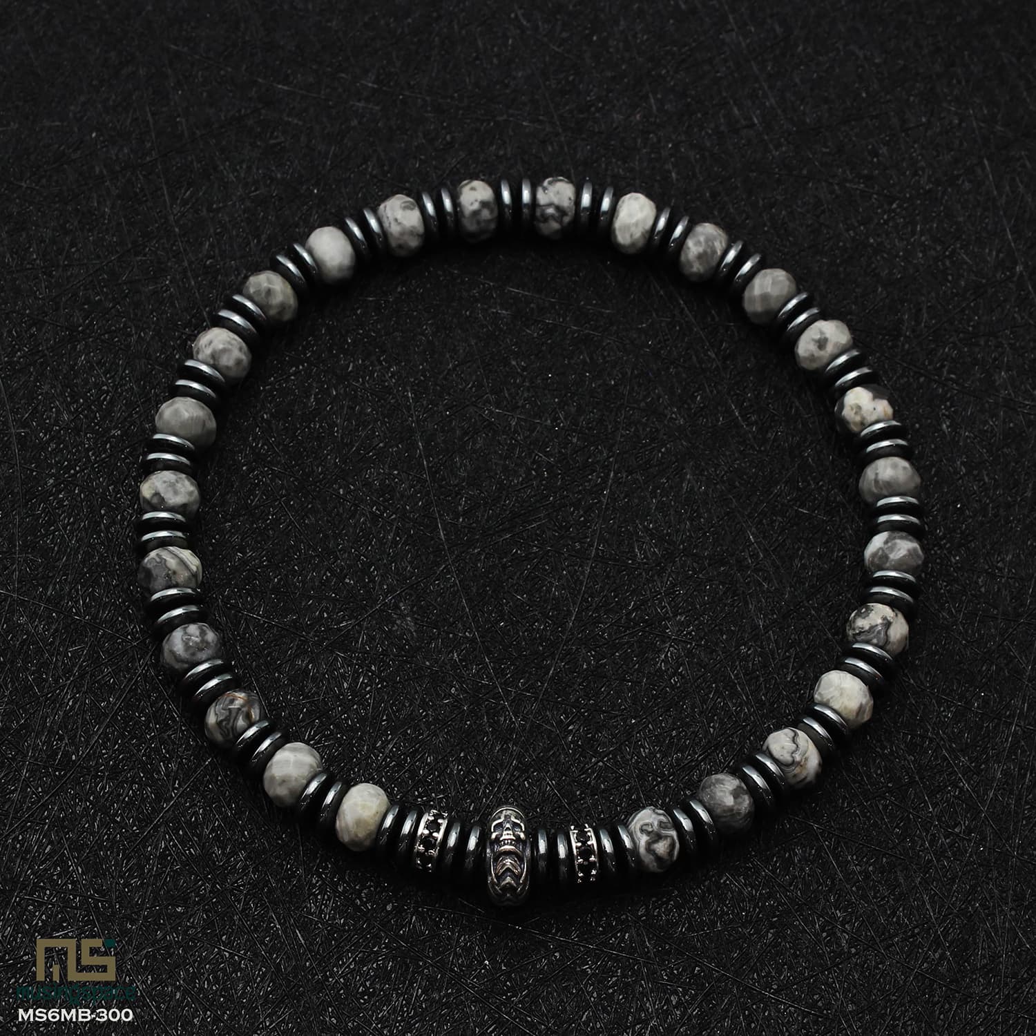 Grey Picture Jasper Skeleton S925 Silver - Healing Gemstone Bead Bracelet | 6mm