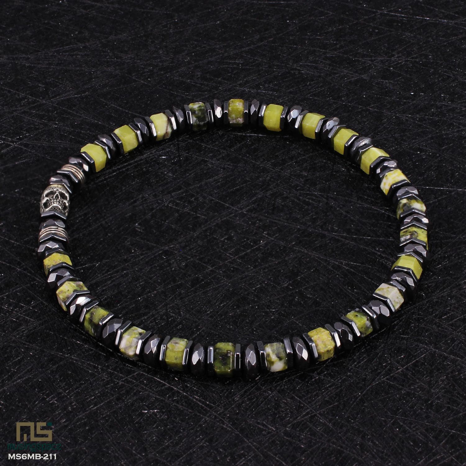 This 6mm Yellow Turquoise handmade gemstone bracelet features carefully selected, polished stones paired with elegant silver beads. The combination of vibrant gemstones and silver accents creates a stylish and unique piece, perfect for adding a touch of elegance and positive energy to any outfit. The bracelet is designed to enhance your personal style while promoting balance, healing, and positivity.
